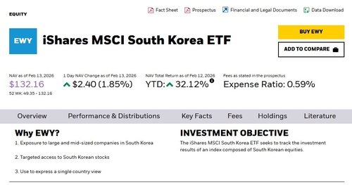 이 같은 한국 증시의 파죽지세는 미국 월가 투자자들의 자금 흐름도 바꿔놓았다. 한국 시장에 투자하는 대표적인 미국 상장 ETF인 'iShares MSCI South Korea ETF(티커명 EWY)'에 매수세가 집중되고 있다.