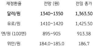 오늘의 달러/원 환율 1,340~1,350원 전망