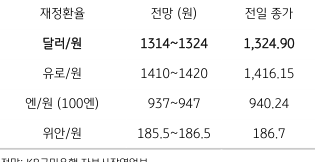 오늘의 달러/원 환율 1,314~1,324원 전망