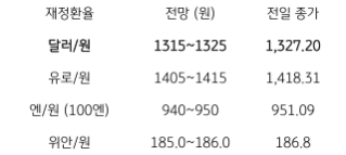 오늘의 달러/원 환율 1,315~1,325원 전망