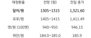 오늘의 달러/원 환율 1,305~1,315원 전망