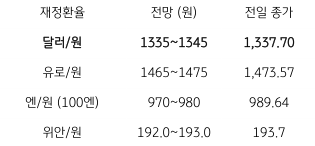 오늘의 달러/원 환율 1,335~1,345원 전망