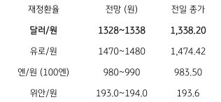 오늘의 달러/원 환율 1,328~1,338원 전망