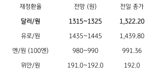 오늘의 달러/원 환율 1,315~1,325원 전망
