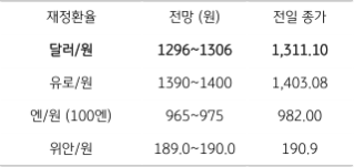 오늘의 달러/원 환율 1,296~1,306원 전망