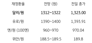 오늘의 달러/원 환율 1,312~1,322원 전망