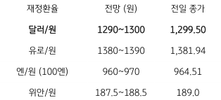 오늘의 달러/원 환율 1,290~1,300원 전망
