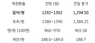 오늘의 달러/원 환율 1,292~1,302원 전망