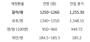오늘의 달러/원 환율 1,250~1,260원 전망