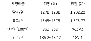 오늘의 달러/원 환율 1,278~1,288원 전망
