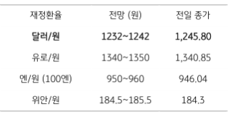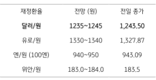 오늘의 달러/원 환율 1,235~1,245원 전망