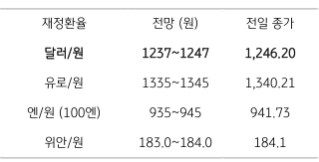 오늘의 달러/원 환율 1,237~1,247원 전망
