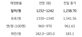 오늘의 달러/원 환율 1,232~1,242원 전망