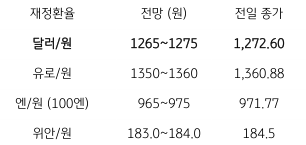 오늘의 달러/원 환율 1,265~1,275원 전망