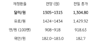 오늘의 달러/원 환율 1,305~1,315원 전망