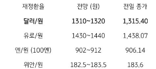 오늘의 달러/원 환율 1,310~1,320원 전망