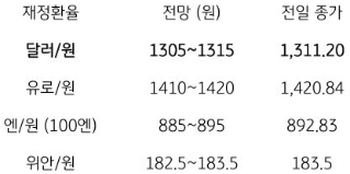 오늘의 달러/원 환율 1,305~1,315원 전망