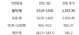 오늘의 달러/원 환율 1,310~1,320원 전망