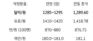 오늘의 달러/원 환율 1,285~1,295원 전망