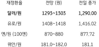 오늘의 달러/원 환율 1,295~1,305원 전망
