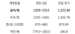 오늘의 달러/원 환율 1,303~1,315원 전망