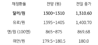 오늘의 달러/원 환율 1,300~1,310원 전망