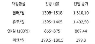 오늘의 달러/원 환율 1,308~1,318원 전망