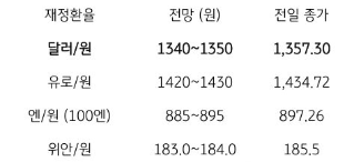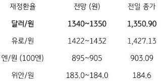 오늘의 달러/원 환율 1,340~1,350원 전망