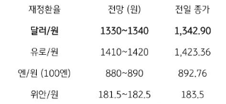 오늘의 달러/원 환율 1,330~1,340원 전망