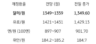 오늘의 달러/원 환율 1,349~1,359원 전망