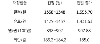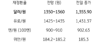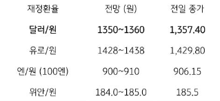 오늘의 달러/원 환율 1,350~1,360원 전망