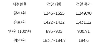 오늘의 달러/원 환율 1,345~1,355원 전망