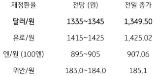 오늘의 달러/원 환율 1,335~1,345원 전망