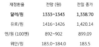 오늘의 달러/원 환율 1,333~1,343원 전망