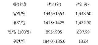 오늘의 달러/원 환율 1,343~1,353원 전망