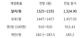 오늘의 달러/원 환율 1,325~1,335원 전망