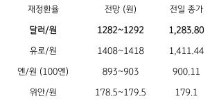 오늘의 달러/원 환율 1,282~1,292원 전망