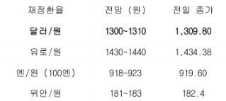 오늘의 달러/원 환율 1,300~1,310원 전망