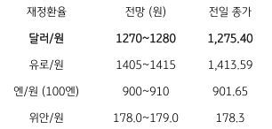 오늘의 달러/원 환율 1,270~1,280원 전망