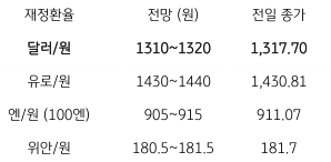 오늘의 달러/원 환율 1,310~1,320원 전망