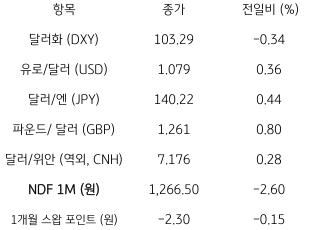 오늘의 달러/원 환율 1,263~1,273원 전망