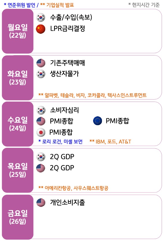 7월 4주차 금융시장 동향