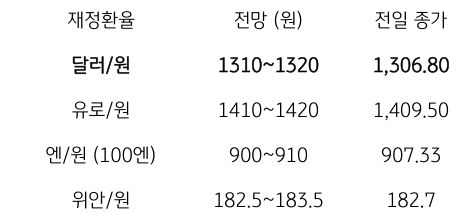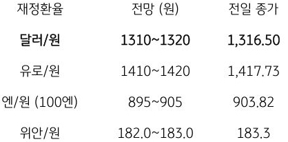오늘의 달러/원 환율 1,310~1,320원 전망