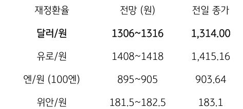 오늘의 달러/원 환율 1,306~1,316원 전망