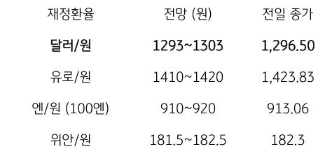 오늘의 달러/원 환율 1,295~1,305원 전망