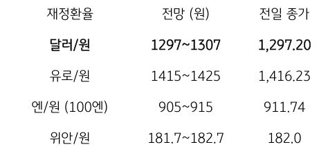 오늘의 달러/원 환율 1,297~1,307원 전망