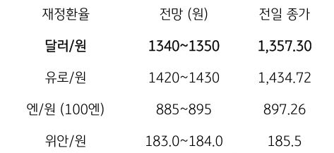 오늘의 달러/원 환율 1,340~1,350원 전망