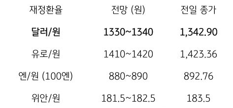 오늘의 달러/원 환율 1,330~1,340원 전망