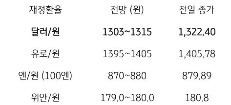 오늘의 달러/원 환율 1,303~1,315원 전망