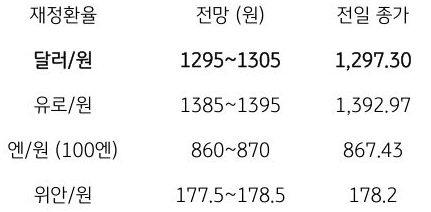 오늘의 달러/원 환율 1,295~1,305원 전망